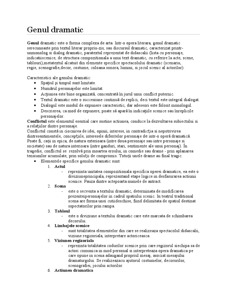 Genul Dramatic Trasaturi Generale Lectie Online Lb Romana