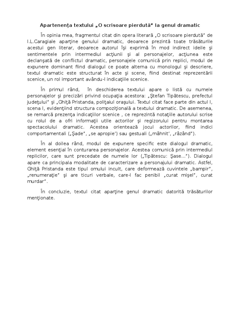 Un Model De Argumentare Pentru Genul Dramatic Brainly Ro
