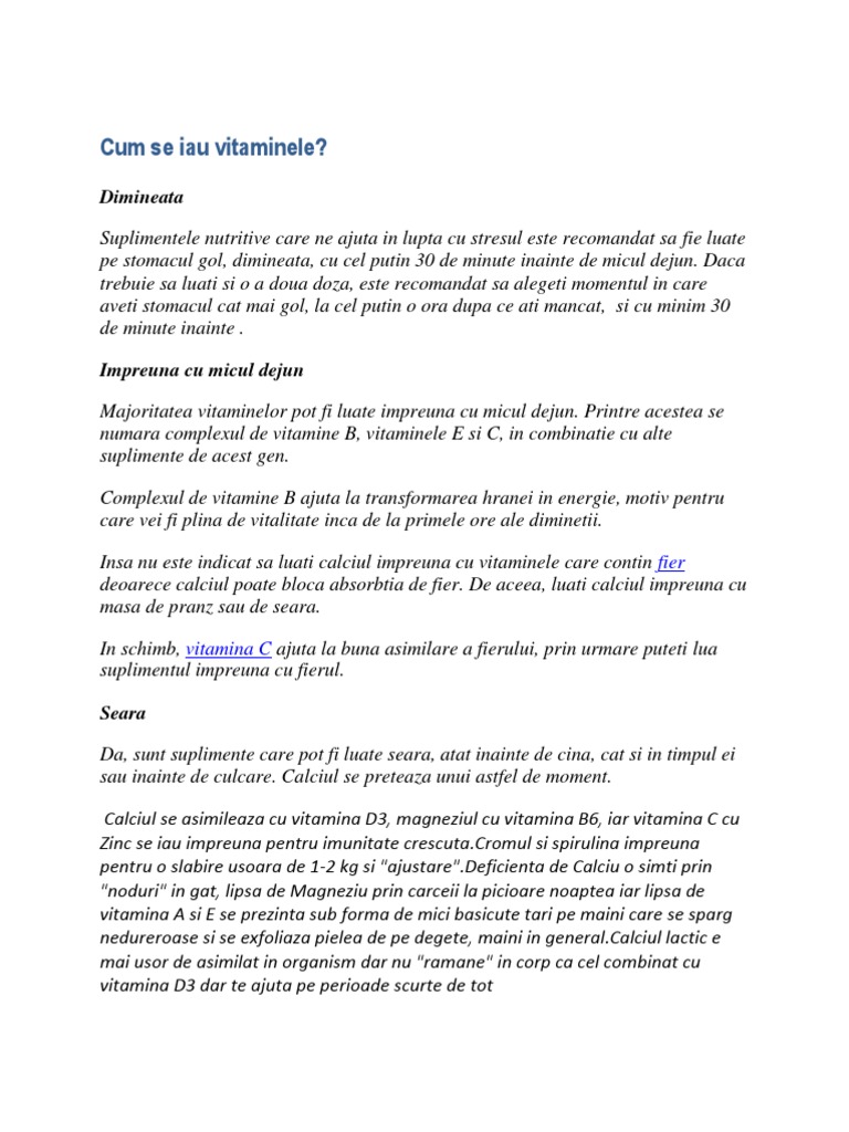 Cum Se Iau Vitaminele