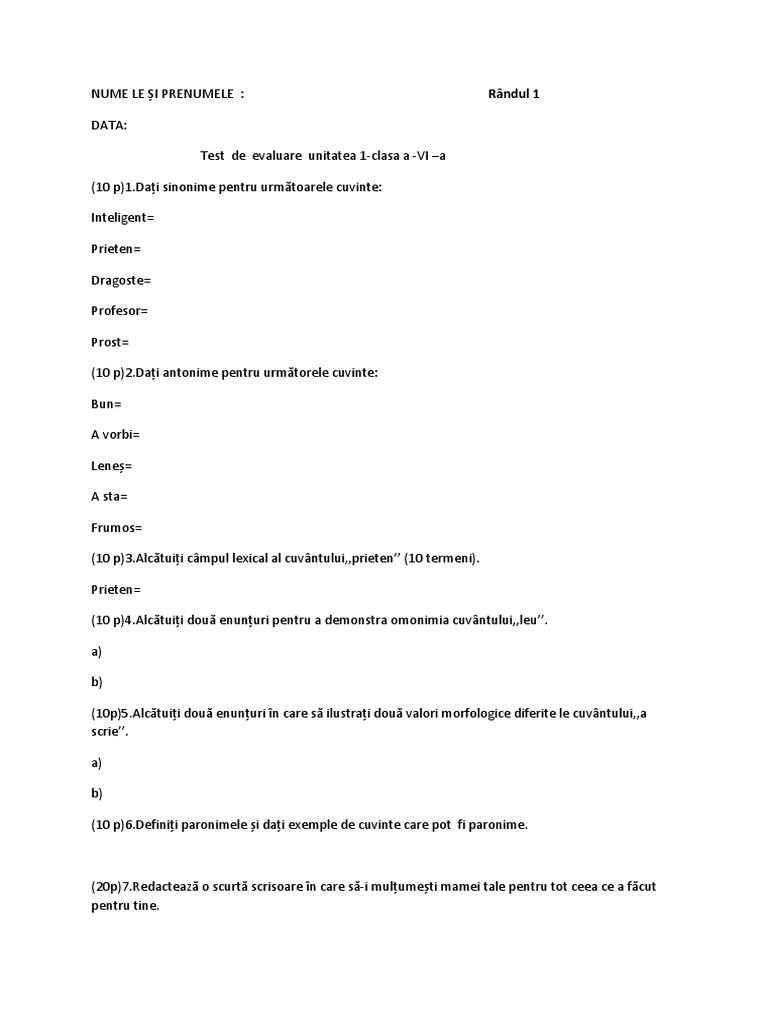 Dati Sinonime Pentru Urmatoarele Cuvinte Din Text