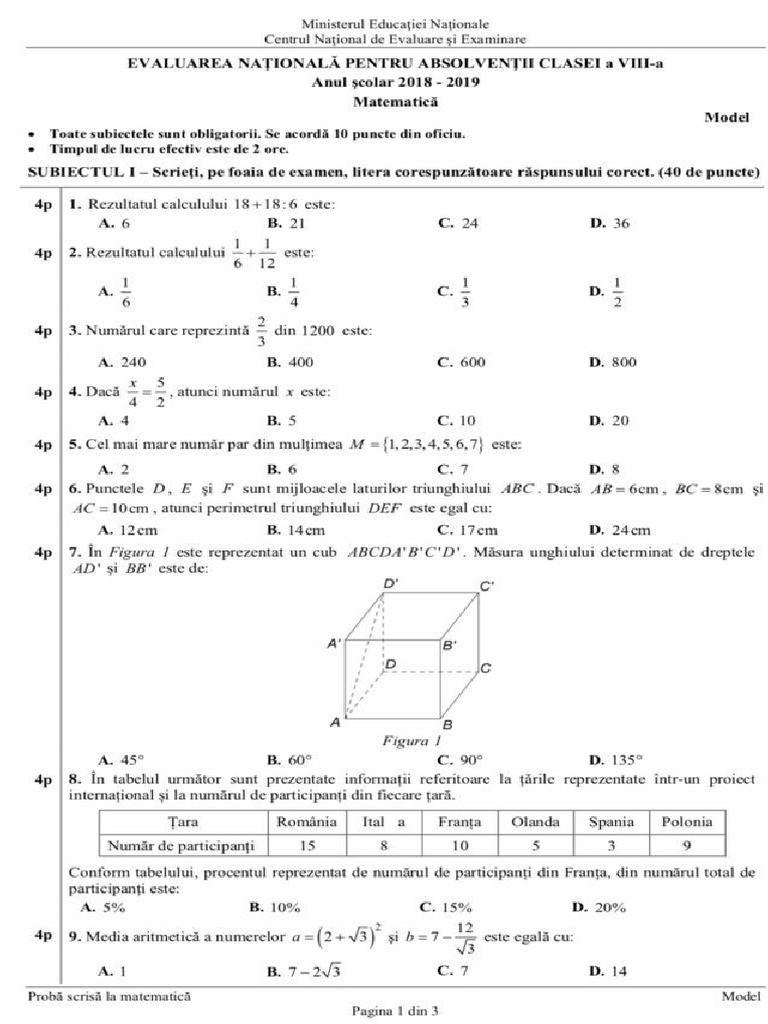 Evaluare Națională 2019 Modele Subiecte și Bareme La Matematică