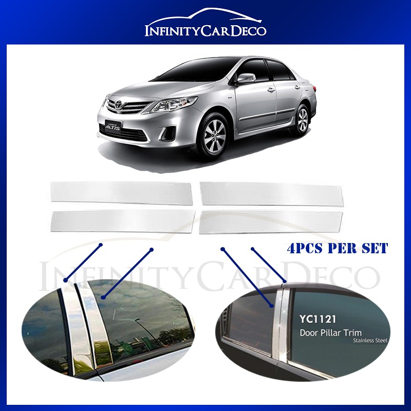 Toyota Altis 2008 2009 2010 2011 2012 4pcs Chrome Door Window Pillar Trim Cover Shopee Malaysia